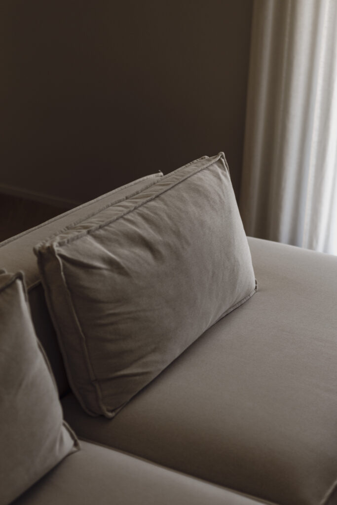 L’idea progettuale si fonda sulla continuità visiva e spaziale, dove le diverse funzioni della zona giorno – living, pranzo e cucina – convivono in un unico ambiente armonico. L’uso sapiente della luce naturale, amplificata da ampie vetrate e tende leggere, gioca un ruolo chiave nel definire l’atmosfera.